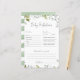 Jogo de Chá de fraldas verde - Predições para bebês Este Cartão de Jogo de Chá de fraldas complementa a minha coleção de Chás de fraldas verde REESE. Você encontrará o Convite, Inserções, Sinais e itens correspondentes no meu compro Zazzle.