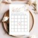 Este jogo do Bridal Bingo adorava com delicados padrões florais cor-de-rosa, estabelecendo um tom romântico e sofisticado para o evento.