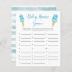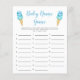 Cartão de jogo "baby name" do tema do sorvete bonito com ilustração aquosa do sorvete verde azul e hortelã em um cone waffle. Os textos são editáveis. Um jogo perfeito para jogar durante o chá. aos hóspedes para anotar nomes de bebês que começam com cada alfabeto. Quem termina todos os alfabetos primeiro ganha!