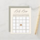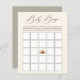 Característica elegante da caligrafia "Baby Bingo", folha de jogos de chá de fraldas. Urso, luas, planetas e estrelas ilustrados com bóquio, coordenando a cor do sábio rústico.