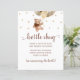 Urso Marrom E Garrafas Douradas E Garrafa De Chá de fraldas Para Cachorros, Bebê! Poster de jogo. Design apresenta um esquema de texto elegante e moderno. Para fazer alterações avançadas, selecione a opção "Clique para personalizar mais".