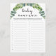 Quantos nomes de bebês você sabe? Jogue Baby Name Race com este jogo de chá de fraldas neutro com cores aquáticas com folhas verdes. O jogo do nome do bebê é muito fácil de jogar. Entregue uma folha de jogo e uma caneta aos seus chás de fraldas convidados. Seus hóspedes terão que inventar nomes de bebês que começam com cada letra do alfabeto o mais rápido possível. Certifique-se de que os convidados saibam se devem escrever nomes de rapazes ou nomes de raparigas. A primeira pessoa a conseguir todos os nomes de A a Z ganha! Baby Name Race não é apenas um jogo empolgante para a sua festa de bebês, mas pode ser usado como um livro de sugestões de nomes para os futuros pais também!