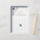 Jogo de chá de panela moderno e elegante, "bridal bingo", com a tenda azul empoeirada e verde cor-de-rosa pincelado, tipografia com script manuscrito e poeira dourada falsa. impressão ou personalize suas perguntas de jogo. Parte de um conjunto de coleção. Veja aqui: https://www.zazzle.com/collections/light_dusty_blue_blush_pink_gold_wedding_suite-119156539216388938 Copyright Anaastasi Surridge for Elegant Invites, todos os direitos reservados.