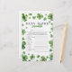 Crie diversão em um chá de bebê com este jogo de Embalar as Letras temático de 'trevo'! O design apresenta uma variedade de trevos em tons de verde em estilo aquarela. As respostas estão disponíveis no verso. Para personalização avançada deste design, basta selecionar o link "Personalizar ainda mais" após personalizar!