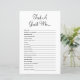 Esta folha de jogo de chá de noiva 'Encontre uma Convidada Que...' é simples e encantadora - perfeita para qualquer chá. Este jogo divertido e fácil certamente trará muitas risadas para qualquer chá de noiva e definitivamente fará com que todos conversem, se misturem e riam. Basta dar uma folha para cada convidado (não esqueça as canetas), ajustar o temporizador para 5 minutos e deixar o divertimento começar! Você ficará surpreso com quantas pessoas compartilham experiências de vida semelhantes.
