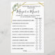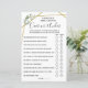 Inclusão do jogo em Inglês e Espanhol (frente e verso), em Sobre ou Sob chá de panela. Mude Bride para Name (Nome) no modelo para as versões em inglês e espanhol. Para mais personalização (pergunta de alteração e outra redação, cor da fonte, estilo da fonte ), clique em personalizar, role para baixo e clique no link "clique para personalizar ainda mais". COMO JOGAR: Os convidados adivinham se acham que o número em cada declaração está acabado ou abaixo