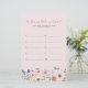 Desafie os seus convidados com o nosso Jogo de Chá Bridal, Cor de Flor Rosa, "Onde Estávamos". Adorados com impressionantes florais de aquarela pintados à mão em cor roxa profunda, azul poeirento e rosa pincelado com verde sábio, esses cartões de jogo complementam maravilhosamente chaleiras e torneiras florais de ouro e creme em um fundo cor-de-rosa pincelado, com uma borboleta rosa giro adicionando encanto. Cada elemento é projetado para criar uma atmosfera coesa e encantadora, garantindo que sua festa de chá noiva seja divertida e elegante.