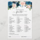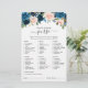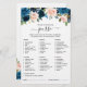 Cartão azul-marinho escuro de chá de panela floral "What's in your purse" (O que há na sua bolsa) com um buquê elegante de folhas de marinho azul, azul-real, branco, rosa esbranquiçado e folhas verdes de eucalipto sábio. Entre em contato comigo para obter ajuda sobre a personalização ou se você precisar de outro produto com este design.