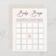 Boho Baby Bingo, folha de jogos de chá de fraldas com a coordenação do padrão bege de apoio.