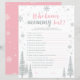 Este adorável jogo para chá de bebê tema Floresta de Inverno apresenta flocos de neve e árvores de inverno num tema de cores prata e rosa. Neste jogo " Quem conhece melhor a mamãe?" para chá de bebê, os seus convidados responderão às perguntas sobre a futura mamãe. Convites e artigos para festa combinando estão disponíveis na minha loja BarabomDesign.