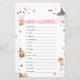 Adicione uma dose extra de diversão ao seu chá de fraldas com nossos Cartões de Jogo de Chá de fraldas Halloween deliciosos! Perfeito para criar momentos memoráveis, essas placas são projetadas para entreter e engajar seus convidados. Compartilhe a alegria de dar as boas-vindas ao seu pequeno com amigos e familiares! Tecla de Resposta BS930: 1. Alto Presidente 2. Pediatra 3. Rolador 4. Nascido 5. Aleitamento 6. Cobertura 7. Um lado 8. Pacificador 9. Frasco 10. Monitor bebê 11. Fralda 12. Banco do carro 13. Booties 14. Bassinet 15. Primeiros passos