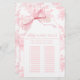 Um jogo elegante e sofisticado de "corrida do nome do bebê", projetado para um chá de menina com tema Coquette. Apresentando um encantador arco cor-de-rosa desenhado à mão sobre o arco boêmico e o padrão floral cor-de-rosa no verso, este jogo clássico adiciona um toque de estilo de eterno e diversão ao seu evento. Perfeito para entreter hóspedes e criar memórias queridas, é uma adição ideal a uma celebração de chá de fraldas doce e pré-disquete.