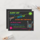 Planeje uma festa de aniversário cheia de diversão com jogos de laser! Crianças e adolescentes vão ter um dia cheio de adrenalina testando sua agilidade, mira e habilidades de trabalho em equipe. Este convite tem luzes laser coloridas de néon disparando através da arma de brinquedos decorados com laser e equipamentos. Adequado para crianças e adolescentes, especialmente para aniversários! Personalize facilmente com os detalhes do seu partido.