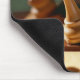 Xadrez Mousepad que mostra o rei, a rainha, o cavaleiro e a lagoa de madeira em um tabuleiro de xadrez de madeira. Tem a inscrição "jogo!" nele.