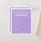 Um jogo clássico super divertido "Adivinha o preço" e "Pavões de bebê" em papel picado design roxo. Excelente para o chá de fraldas temático latino-americano!