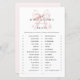 Pink bow "Who knows mommy best" baby shower game for a memorable party.