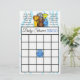 Jogos de chá de fraldas temáticos para animais da selva ou do zoológico. O lado um é o Chá de fraldas Bingo e o lado dois é, "Quem conhece melhor a mamãe?" com girafa de macaco-leão e elefantes e hipopótamo.