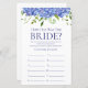 Esta linda folha de jogo de chá de panela "How Old Was The Bride?" (Quão velha era a noiva?) com hortênsias azuis é elegante e encantadora - perfeita para qualquer casamento de jardim, botânico, rústico, romântico, floral, formal ou vintage. Sua combinação requintada de hortênsias azuis de múltiplos tons graciosos e folhagens tênues é fluida, delicada e bonita. Este jogo divertido e fácil certamente trará muitas risadas para qualquer chá de panela! Peça que familiares e amigos lhe enviem fotos da noiva em diferentes idades e as imprimam. Numere-as e coloque-as perto destas folhas de jogo. Simplesmente dê uma folha para cada convidado (não esqueça as canetas) e deixe a competição começar! Você ficará surpresa com quantas pessoas realmente sabem as idades da noiva.