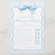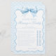 Um clássico sofisticado "Adivinha quem? Jogo de mamãe ou Pai projetado para um chá de bebê, adornada com um arco azul pastel charmoso, uma faixa de fita e um padrão de bolinhas caprichosa no fundo. Envolva seus hóspedes com este jogo delicioso, perfeito para adicionar diversão e entusiasmo à sua celebração enquanto cria memórias queridas.