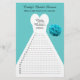 Este jogo de palavras de chá de panela apresenta um vestido branco de noiva em um fundo aqua com rosas à direita. O jogo mostra o nome da noiva para estar no topo. O objetivo do jogo é fazer tantas palavras do nome da noiva, do noivo e da palavra casamento. Um jogo divertido para um chá de panela. Direitos autorais