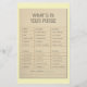 Chá de panela divertido O que há no seu jogo da bolsa. Personalize esta folha de jogos de dois lados adicionando o nome da noiva e a data do chá. Faça check-out de toda a coleção para ver outros itens correspondentes.