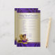 Bebê afro-americana usando uma linda tutu roxa e colar de pérolas em um par de sapatos elegantes de salto alto dourados. Este cartão de jogo de chá de bebê fofo tem palavras embaralhadas de bebê de um lado e teste de rimas infantis do outro. Este folheto de jogo de chá de bebê roxo e dourado é divertido e econômico! Você pode escolher o tamanho do papel e adicionar suas próprias palavras e rimas. Aqui estão as respostas para os jogos:
