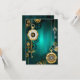 Joias, relógio de ouro com uma corrente de ouro e chaves em um fundo textural verde. Estilo Steampunk.