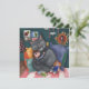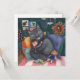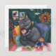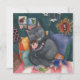 Este cartão-postal foi realizado manualmente usando aquarelas, guaches e lápis. Conta uma bela história de amor entre uma garotinha e seu animal de estimação.