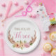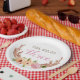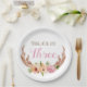 Jovem selvagem e três pratos de aniversário de floresta Perfeito para uma festa de criança com tema de câncer de floresta