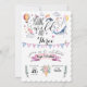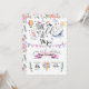 INA WHIMSICAL WATERCOLOR FESTA DE ANIVERSÁRIO INVITATIONE convite de aniversário floral moderno e legante apresenta um buquê de flores de aquarela pastel macios, ilustrações químicas de baleias, uma lhama, um unicórnio, um balão de ar quente e uma faixa adorável. Personalize com seus detalhes de festa de aniversário em letras elegantes de caligrafia preta.