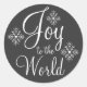 Um esquema de cores de quadro negro e flocos de neve decoram esta Alegria aos adesivos do Mundo. Use estes adesivos de na moda para Natal, envelopes, presentes, assar, cozinha, troca de biscoitos, etiquetas de presentes, artesanatos, etc.O design é da arte original.