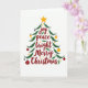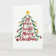 Brilhar o feriado de alguém com um cartão de saudação de Natal lindo 🎄 Este cartão apresenta uma ilustração da árvore de Natal em fundo branco, feita de palavras festivas como alegria, paz e Feliz Natal em letra vermelha cursiva. A árvore é enfeitada com folhas verdes, pontos amarelos, um canto superior amarelo, e um ornamento vermelho e branco pendurado do lado 🌟 O design geral é simples, mas alegre, perfeito para espalhar alegria de férias aos seus entes queridos nesta 🎁 estação ✨.