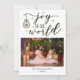 Este design de Natal gráfico mostra sua foto favorita com o texto "Joy to the world" em um roteiro elegante de caligrafia, acentuado com o ouro de Natal bauble e estrelas. Abaixo personalize com seu nome de família e ano editando o texto na caixa de texto fornecida. #natal #feriado #sazonal #festivo #religioso #elegante #na moda #inverno #neve #floco #estrela #alegria #foto #fotógrafo #diy #doitsi #personalizado #personalizado #nome #moderno #tendências #moda #moda #padrão #ouro #branco