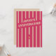 Um cartão de saudação de aniversário francês, rosa-rosa-quente e espantoso, adornado com listras beges e uma vela. Este cartão pode ser personalizado com o nome do celebrante de aniversário.