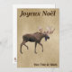 Uma pintura digital "vintage look" de uma alce (Alces Alces) sobreposta a um papel antigo ou a uma imagem de fundo pergaminho. O texto em francês que lê "Joyeux Noё l" também é exibido. Adicione seu próprio texto adicional.