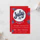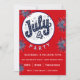 Cute medallion with a blue bubble letter July 4th appears on the front of this fully customizable party invitation with red and blue fireworks. The reverse of this invitation has a place to customize additional information for your guests.