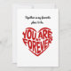 A Tipografia 'You Are My Forever' num Grande Coração Vermelho, associada ao título 'Juntos é o meu lugar favorito para ser', e uma Foto em forma de Coração no verso, Cartão de Dia de os namorados Personalizado. Esta placa de na moda e fofo apresenta um design na frente de um grande coração vermelho com 'Juntos é o meu lugar favorito. Você É A Tipografia Do Meu Para Sempre. No verso há uma mensagem sentida e uma foto em forma de coração, tudo que pode ser personalizável para ajustado de suas necessidades. Perfeito para um casal que acredita em amor verdadeiro para sempre. Copyright Soar em Designs de Estilo.