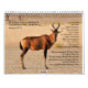 O parque internacional de Kgalagadi limita África do Sul, Namíbia, e Botswana e é uma área vasta de dunas vermelhas, de deserto, e de animais selvagens notáveis. Os leões, o girafa, o Wildebeest, a hiena, o leopardo, os antílopes e as criaturas menores como o mangusto e mesmo os esquilos abundam. Tome cada mês do safari do deserto do ano com este calendário. Para a compra do impresso profissional, os únicos impressões da arte-qualidade, ou dos livros de minhas imagens, visitam por favor meu Web site em http://www.jczinn.com.
