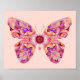 Esta poster é uma borboleta caleidoscópica marmoreada com fundo de pêssego claro. As cores são lavanda, cor-de-rosa-rosa, ouro amarelo, laranja e roxo.