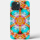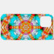 Caleidoscópio estelar em ciano e laranja em greve arranhado com pontas, formas estelares discretas de seis pontas no centro e um hexágono.