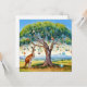 Um canguru de Natal sentado debaixo de uma árvore de goma decorada com bolhas e salto. "Feliz Natal e Feliz ano novo"