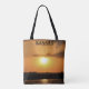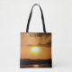 Uma fotografia de um Sunset brilhante e colorido com um reflexo de água com o Sol e a nuvem. Este é ao norte de Hutchinson Kansas USA que está em um TOTE BAG.