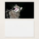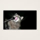 Cinza por gato canta num microfone, diversão e cartão de visita de cártaro