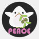 Um colar bonito com uma pomba kawaii com um galho de oliveira no bico, com duas azeitonas sorridentes e bonitinhas acima da palavra "Paz" no roxo Bahaus 93. Excelente para amantes da paz, pombas, azeitonas e kawaii!