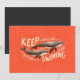 Charming vintage-style illustration featuring two whales swimming together with the uplifting phrase “Keep Swimming.” The warm coral background, textured artwork, and hand-drawn marine life design create a playful yet inspirational ocean-themed piece.