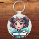 Procurando um acessório divertido e adorável para a mochila ou o teclado do seu filho? Olhe só esta chaveiro adorável com uma bela ilustração de uma Garota de Futebol!