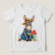 This is a design that has a funny donkey wearing a hat and overalls. It's surrounded by flowers.