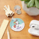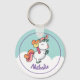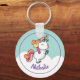 Crianças chaveiro com um unicórnio fofo em uma nuvem com fundo azul.