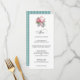 Uma escolha encantadora em cartões de cardápio de casamento, esta design apresenta a flor rosa exótica da proteína Rei rosa em um arranjo de aquarela com sotaques de folheto. Edite o menu de exemplo com as especificações do menu de casamento.