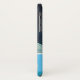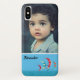 Maleta azul surfando fotos inteligentes com texto personalizável.